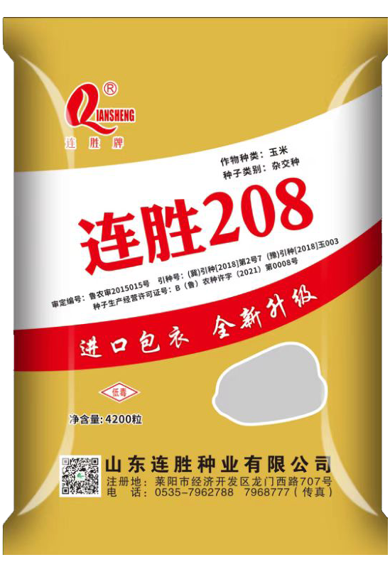栽培技术要点:根据连胜208果穗硕大,结实性好,籽粒长,出籽粒高,抗绣病等特点,该品种适合西北各省区种植,种植密度6000~7000株/亩。在黄淮海地区适合春播,套播和夏直播,大小垄种植最好,适宜密度3200~4000株/亩。