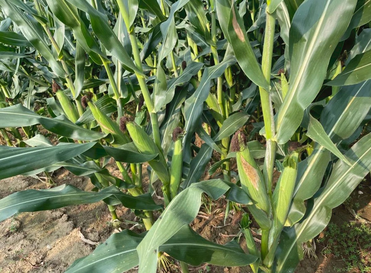 特征特性:夏播生育期96天,比郑单958早2天,株型紧凑、靓丽;株高260cm,穗位高94cm,穗长17.8-21.2cm,穗行数平均16行,籽粒金黄色,半马、质硬,千粒重330克,综合抗性优良。